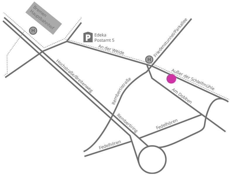 Kontakt Körper.Psyche.Therapie.Psychologische PrivatpraxisM.Sc. Inge SchröderAußer der Schleifmühle 2928203 BremenTel.: 0421/64 36 68 68E-Mail: praxis@ingeschroeder.deTermine nach Vereinbarung.AnfahrtStraßenbahnlinien 1, 4, 6 und 10. Haltestelle „Rembertistraße“; ca. 170 Meter FußwegParkhaus Postamt 5ca. 350 Meter FußwegAnfahrt über GoogleMaps planen